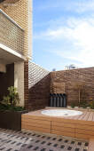 Por el contrario, las viviendas funcionan como contenedores introvertidos, que se cierran al sur y se abren hacia el norte. Para ello, las aberturas y los balcones se unifican en un gradiente de ranuras de distintas densidades que funcionan como filtro climático y resguardo de la intimidad, en una cuadra repleta de edificios al frente. En el fondo del lote la masa edilicia se organiza en torno a un patio que permite iluminar y ventilar los espacios del contrafrente del edificio hacia el norte y hacia al este.